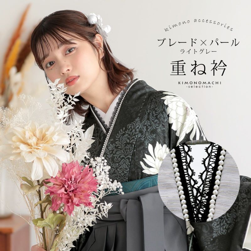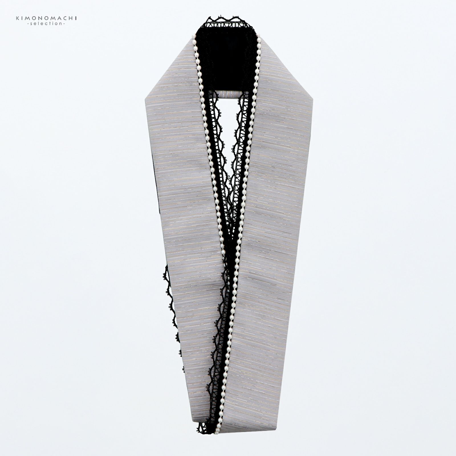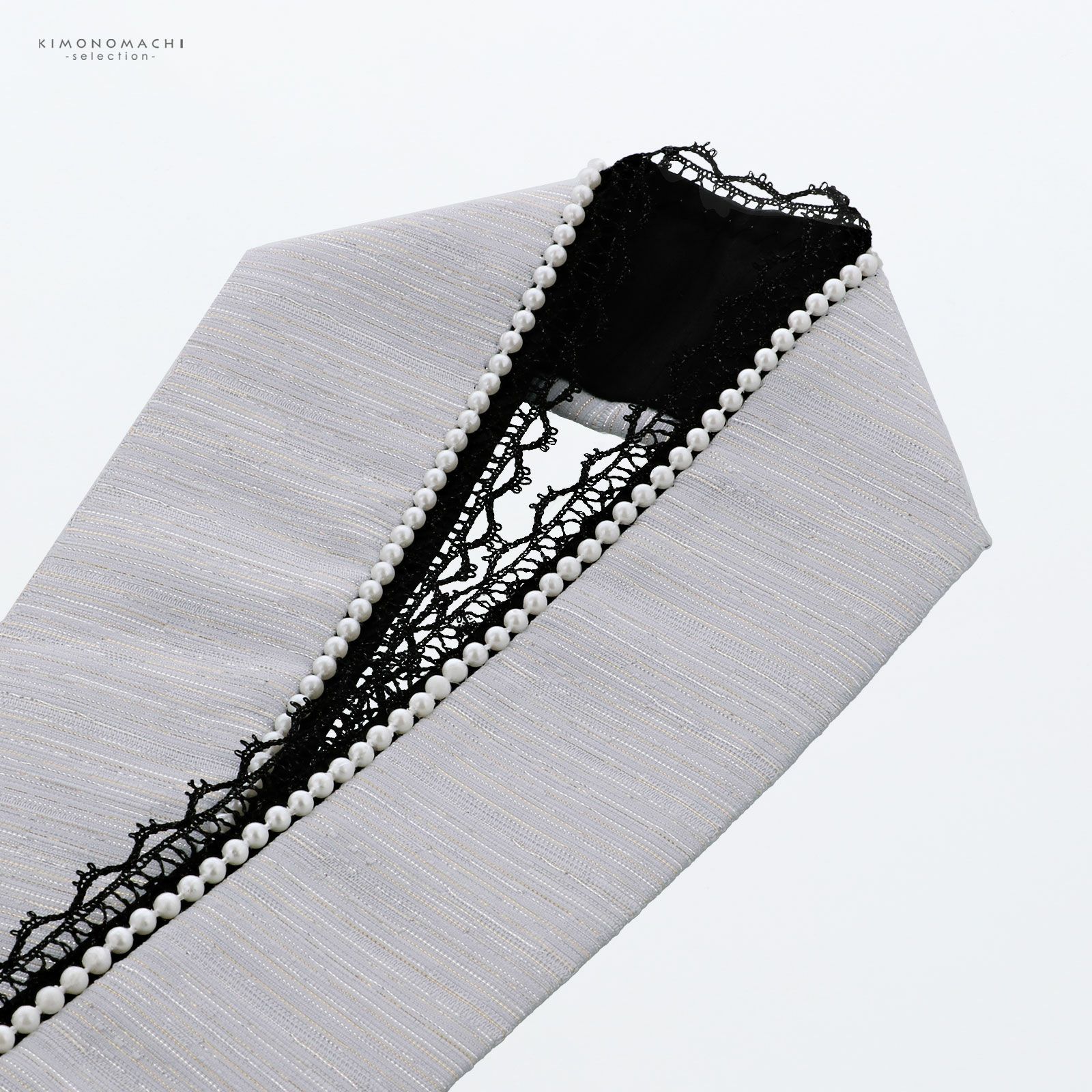 お着物の衿元をより華やかにしてくれる、パールビーズ付きの重ね衿です。
