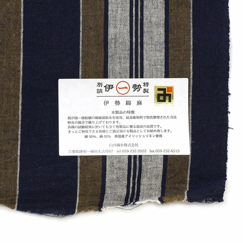 一流紡績の綿麻混紡糸を使用し、最高級染料で染色整理された臼井織布特有の風合いで織りあげた逸品です。
