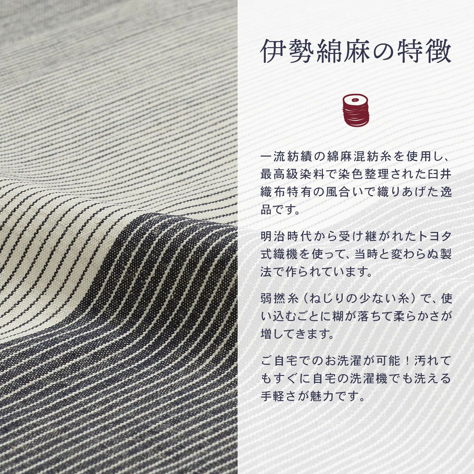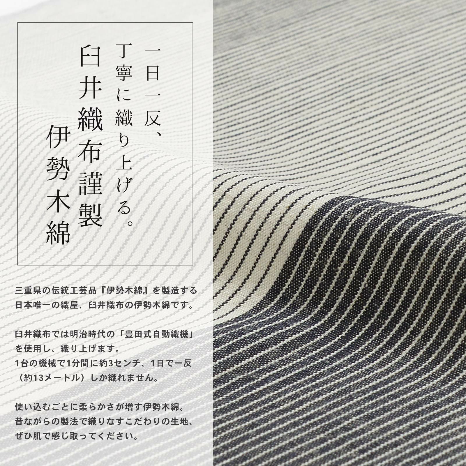 ゆっくりと時間をかけて丁寧に織り上げられた伊勢木綿の優しく素朴な風合いを、ぜひ肌で感じ取ってください