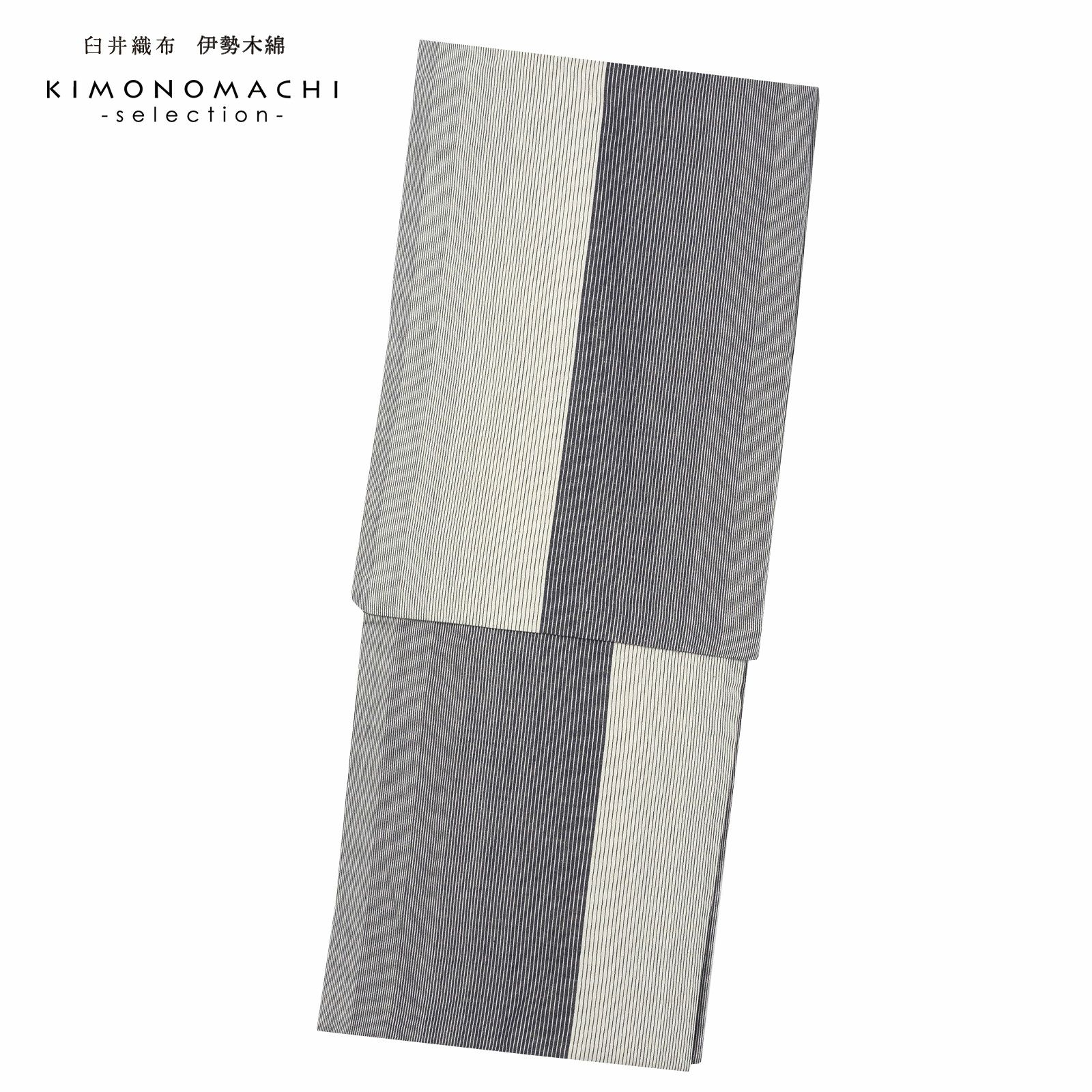 やわらかく、どこかぬくもりが感じられる「伊勢木綿」のお仕立て上がり単衣着物 伊勢木綿 洗える着物 単品「貝割れ滝縞 グレー×アイボリー」お仕立て上がり 綿麻きもの 日本製 三重県 伝統工芸品 単衣 綿麻 カジュアル チェック 小紋 レディース キモノ kimono【メール便不可】