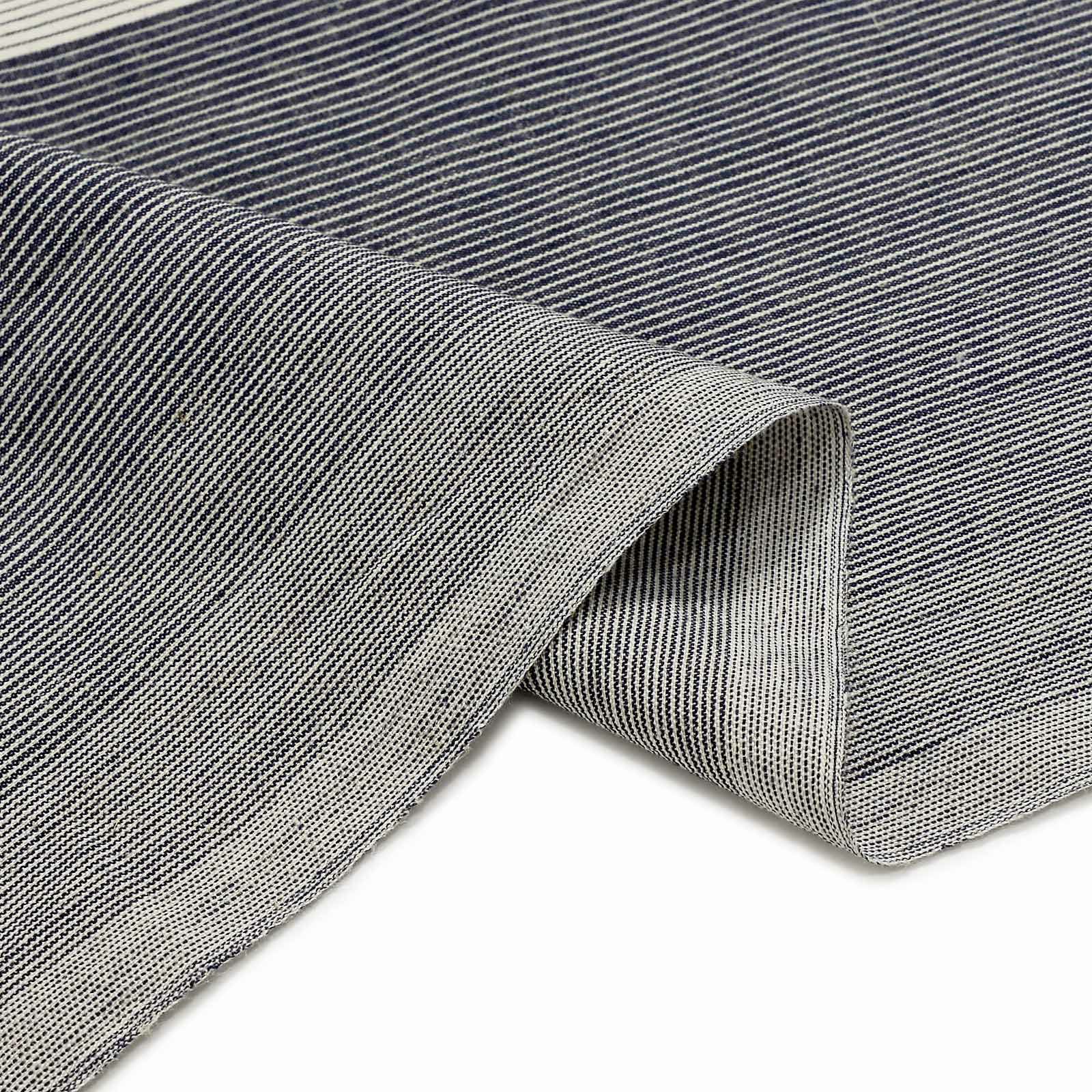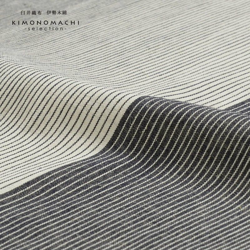 【色柄】地の2分の1強は浅い黒に生成り色の細かな滝縞、残りは生成り色の地に浅い黒の細かな滝縞。大きな割付けと太さの異なる縞のグラデーションが粋な印象に。