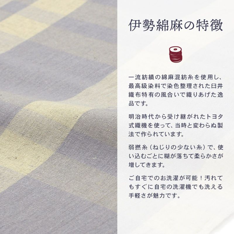 ゆっくりと時間をかけて丁寧に織り上げられた伊勢木綿の優しく素朴な風合いを、ぜひ肌で感じ取ってください