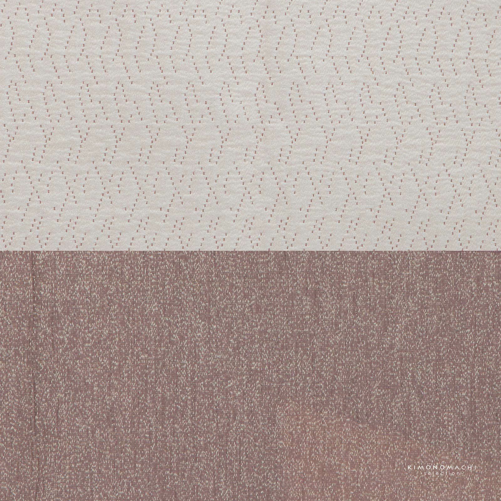 【色柄】シボのある灰みのくすみピンクの地にゴールドのラメ糸が織り込まれています。