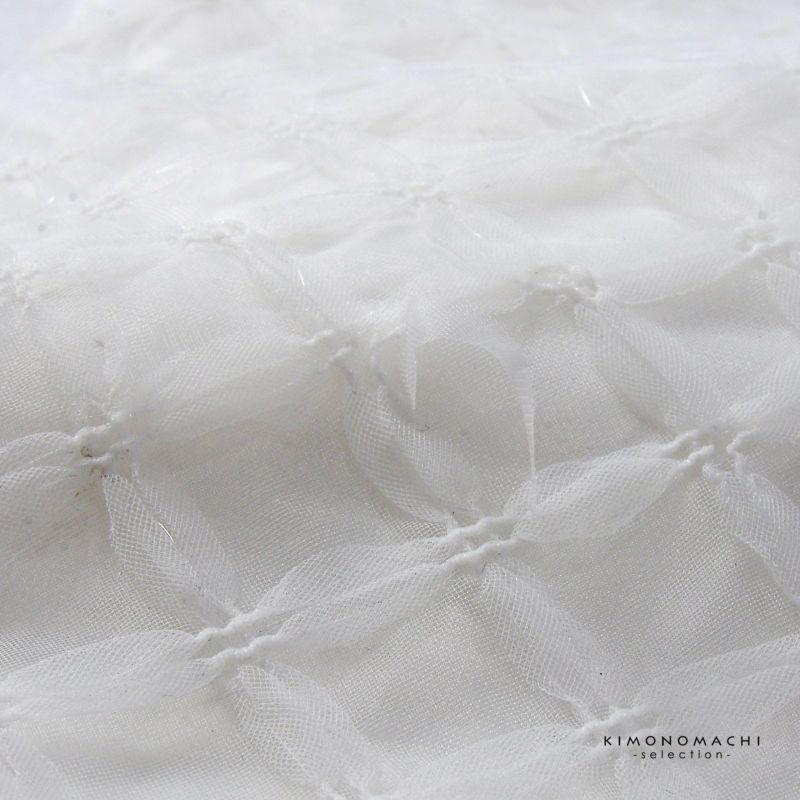 【色柄】白の格子状にプリーツを寄せた変わり織りのチュールレース地。