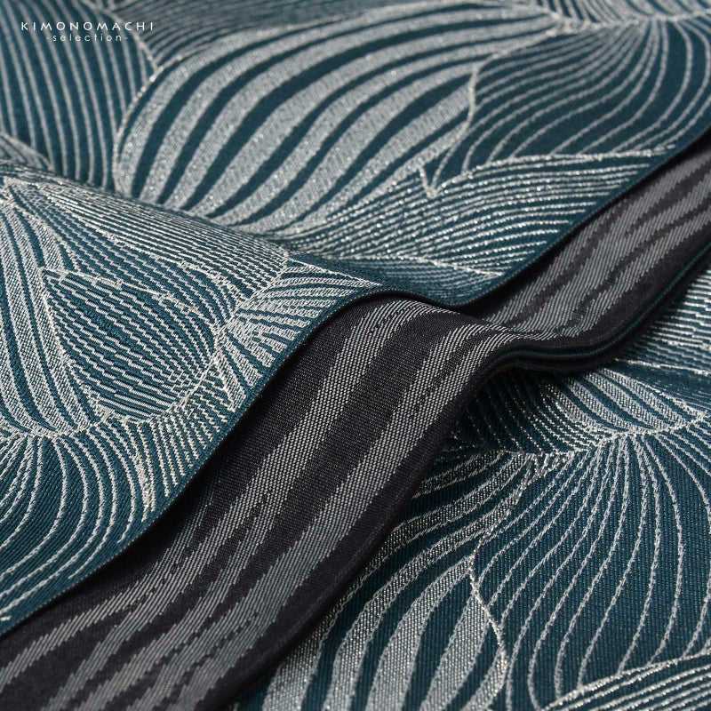 C.青碧:やや鈍い青緑の地にシルバーの線で表現されたほころびかけの大きな菊の花。裏は浅い黒の乱れ縞。
