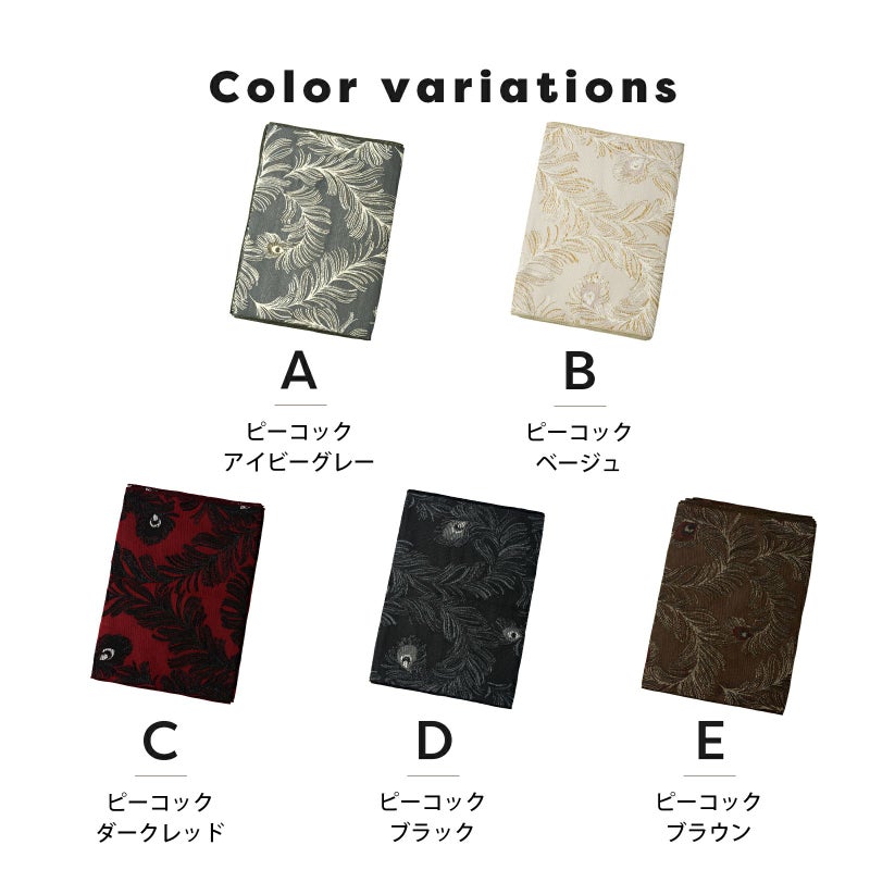 B.ピーコック ベージュ:ベージュの地にシャンパンベージュで織り出された孔雀の羽模様。ポイントに白茶、シルバー。