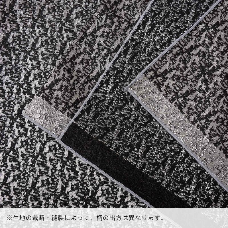 A.マーブリングモザイク グレージュ×ブラック:光沢のあるグレージュの地に黒で織り出された霜降り調のモザイク文様。縁はグレージュ。
