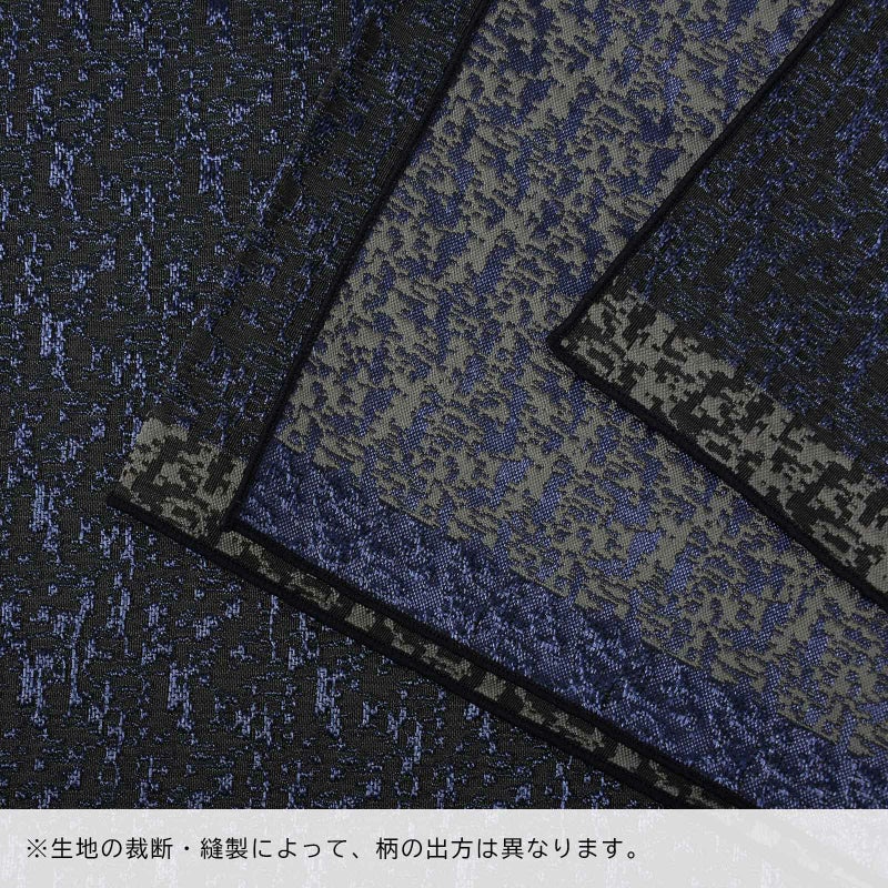 B.マーブリングモザイク ブラック×ダークブルー:光沢のある黒の地にダークブルーで織り出された霜降り調のモザイク文様。縁は黒とグレー。