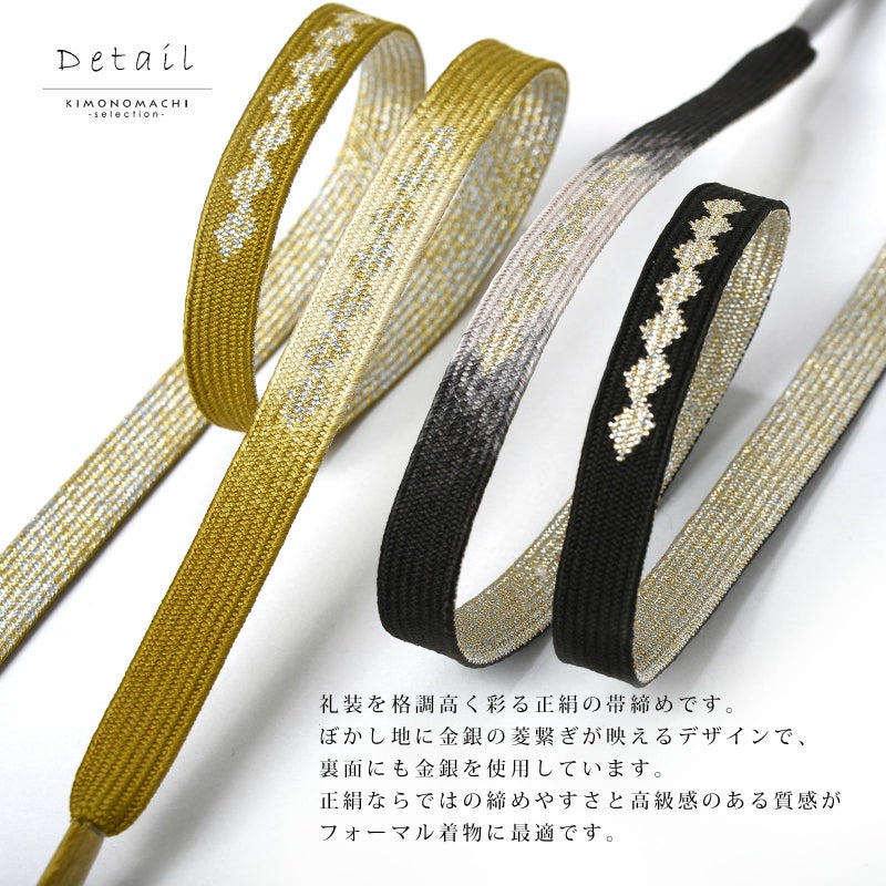 礼装を格調高く彩る正絹の帯締めです。