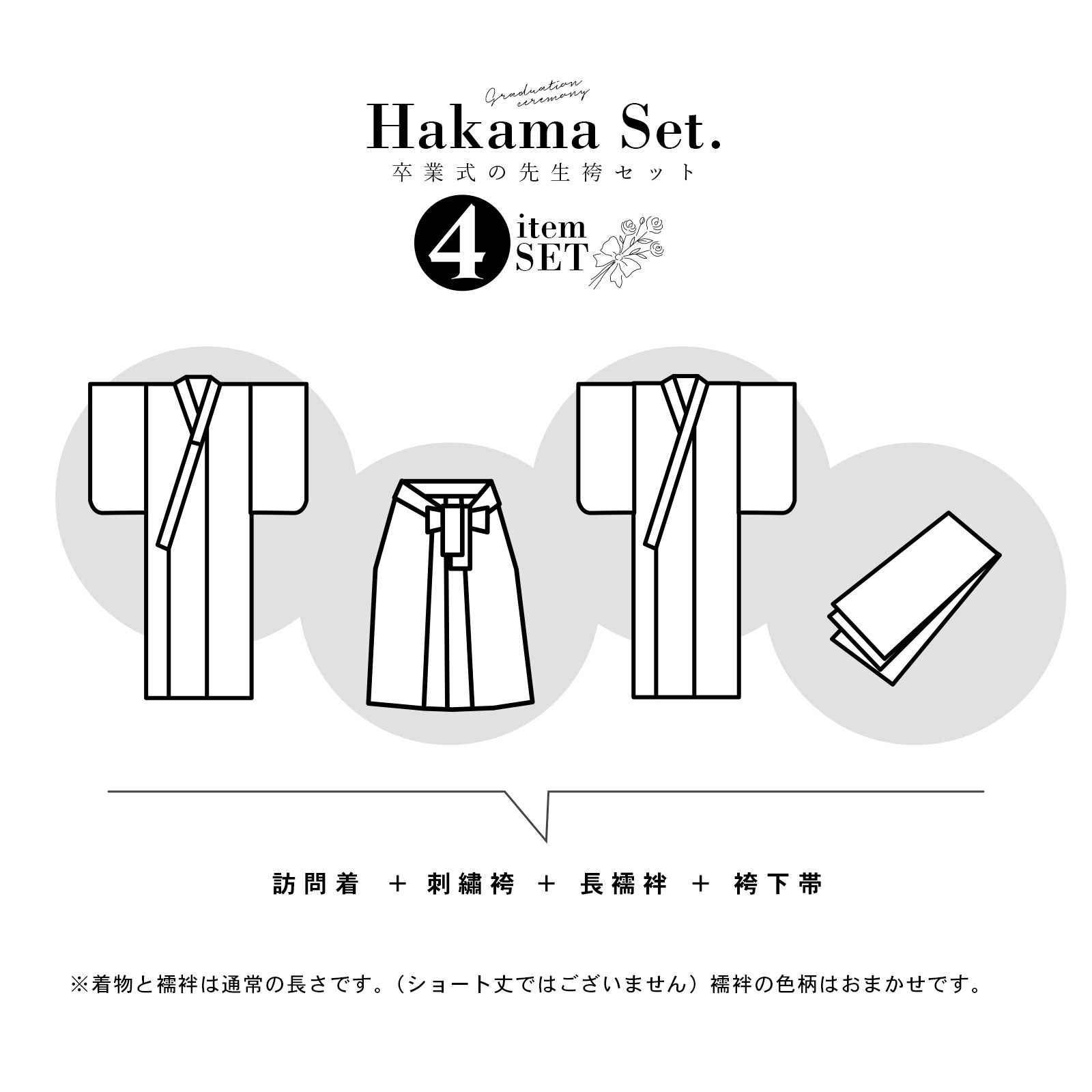 訪問着と袴に、帯と襦袢を合わせた先生袴4点セット