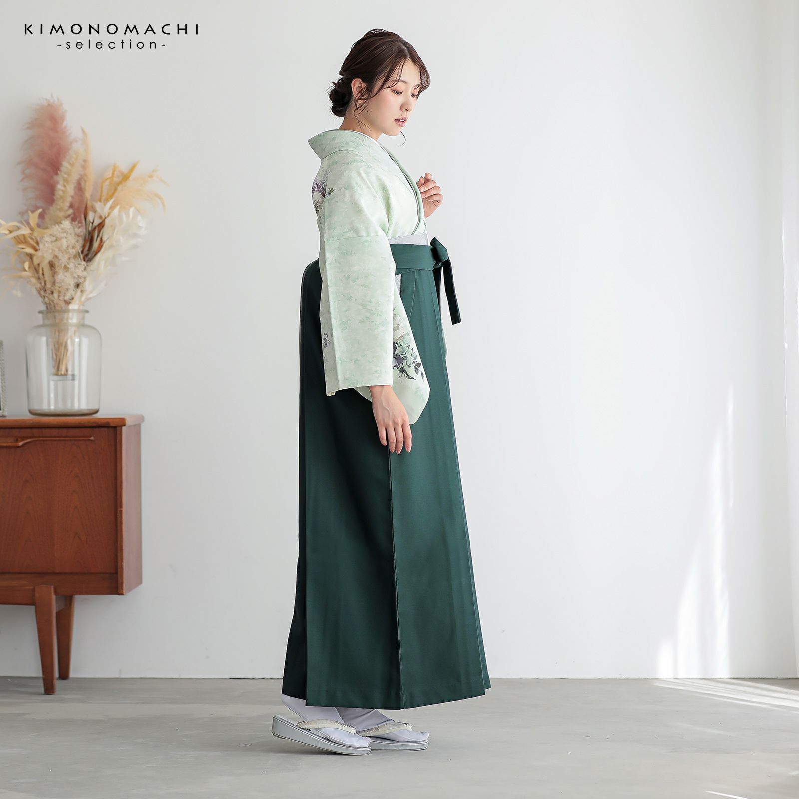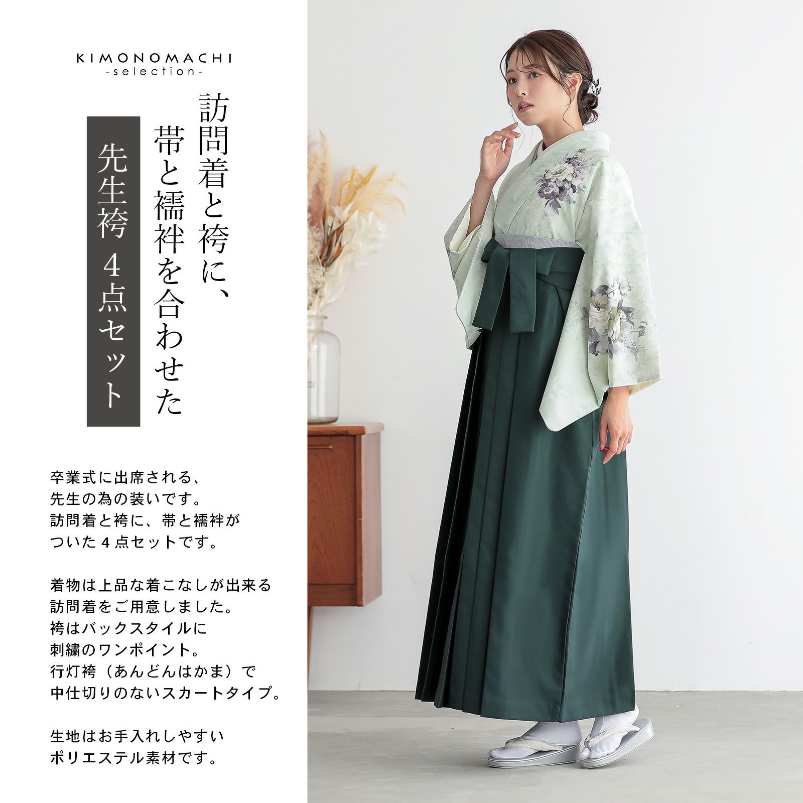 訪問着と袴に、帯と襦袢を合わせた先生袴4点セット