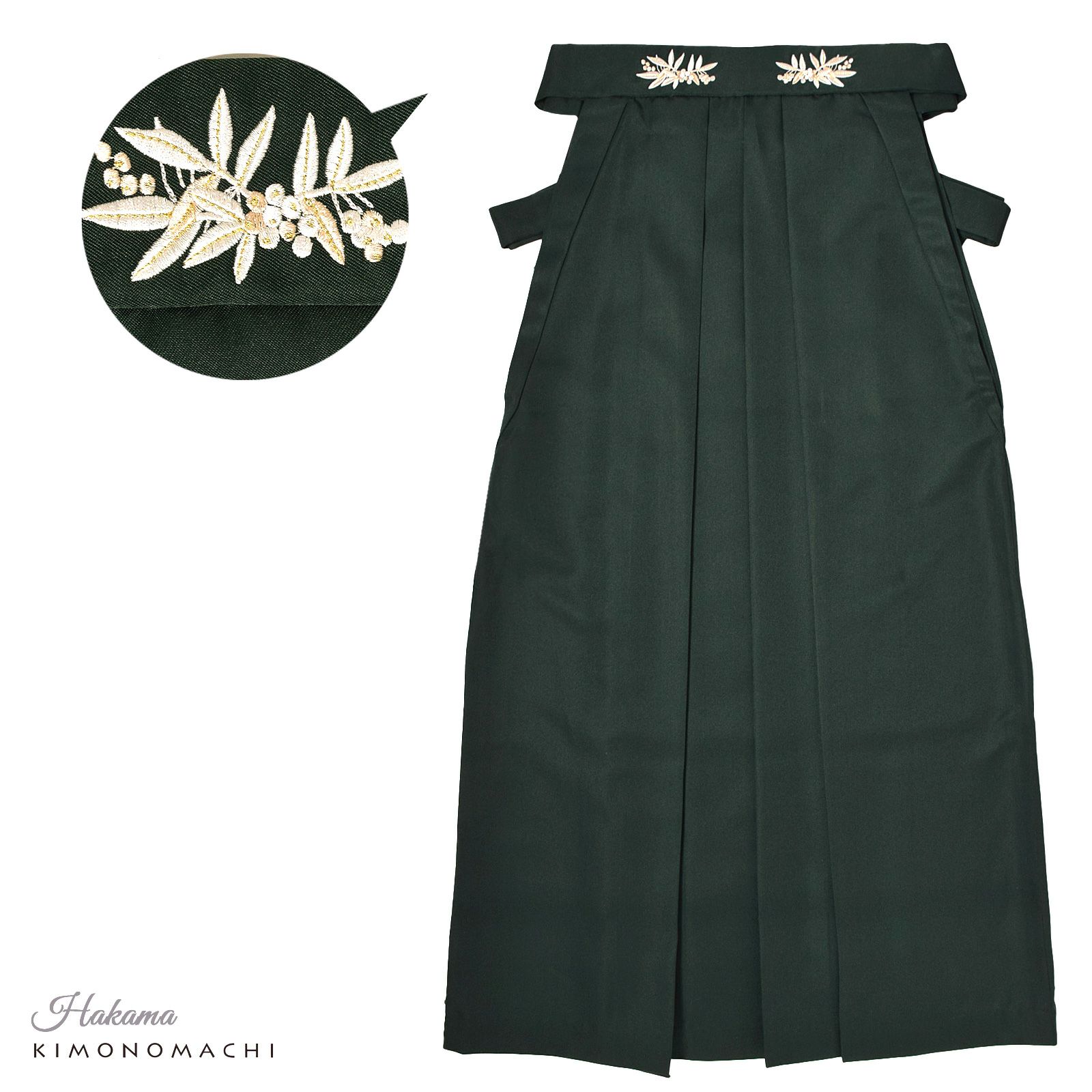 袴はバックスタイルに刺繍のワンポイント。行灯袴(あんどんはかま)で中仕切りのないスカートタイプ。