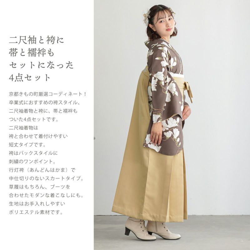 京都きもの町厳選コーディネート!卒業式におすすめのスタイル、二尺袖着物と袴に、帯と襦袢もついた4点セットです。