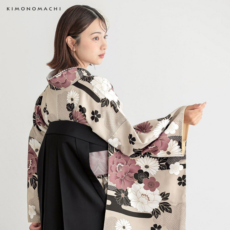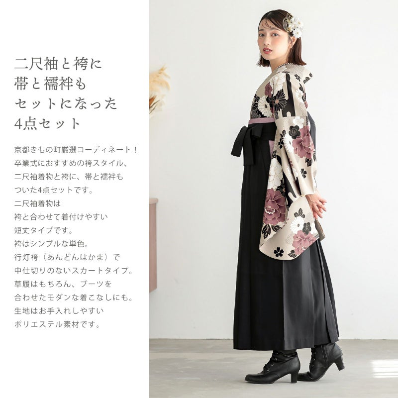 京都きもの町厳選コーディネート!卒業式におすすめのスタイル、二尺袖着物と袴に、帯と襦袢もついた4点セットです。