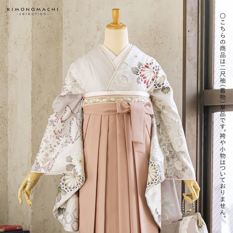 卒業式、謝恩会に 袴に合わせて華やかに 二尺袖着物 二尺袖着物 単品「ペールローズ 丸菊に四季花」Fサイズ お仕立て上がり 短丈 ショート丈 レディース 洗える着物 二尺袖 着物 袴に合わせて 卒業式 謝恩会【メール便不可】