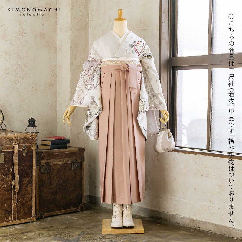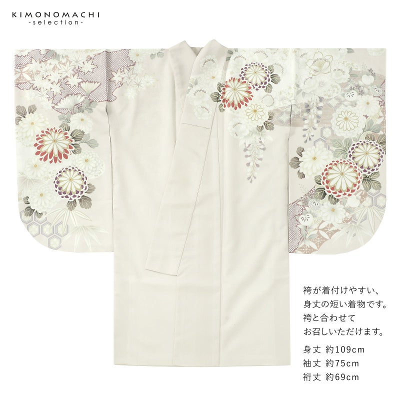 二尺袖着物 単品「ペールローズ 丸菊に四季花」Fサイズ お仕立て上がり 短丈 ショート丈 レディース 洗える着物 二尺袖 着物 袴に合わせて 卒業式 謝恩会【メール便不可】