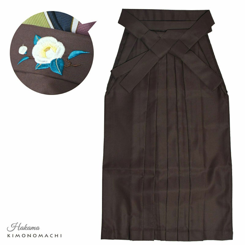 袴:茶色地、腰の部分に白の椿の刺繍