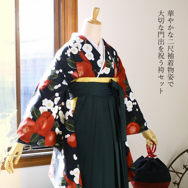 卒業式に 二尺袖袴セット 卒業式 袴 レディース (卒業式応援75%SALE 3/5迄)袴 セット 卒業式 女性 4点セット「二尺袖+刺繍袴+袴下帯+襦袢」卒業式 女性 レディース お仕立て上がり 袴セット 二尺袖着物セット 着物 二尺着物 袴【メール便不可】