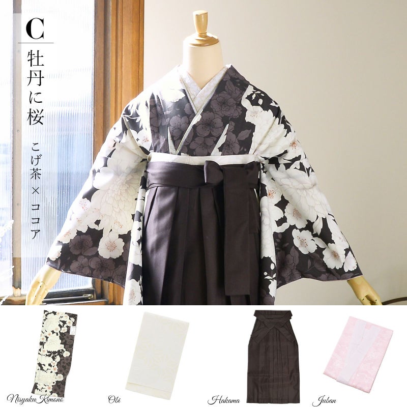 C.牡丹に桜 こげ茶×ココア
