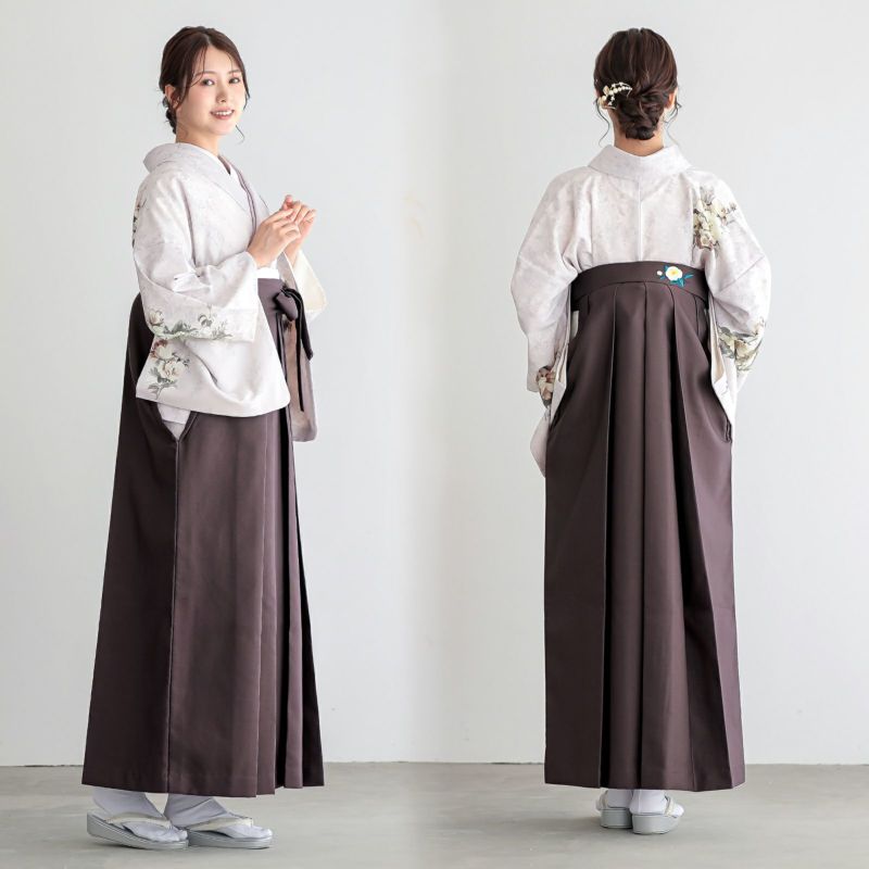 袴はバックスタイルに刺繍のワンポイント。行灯袴(あんどんはかま)で中仕切りのないスカートタイプ。