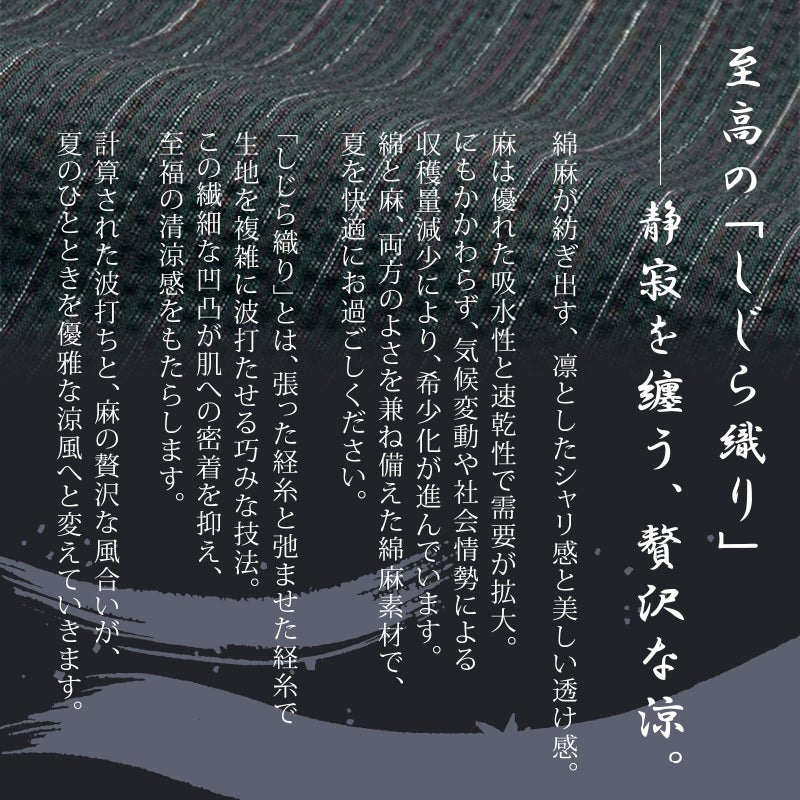 綿麻素材特有のシャリ感と、見た目にも涼しく透け感があるしじら織りは、暑い夏を涼しく感じさせてくれます。
