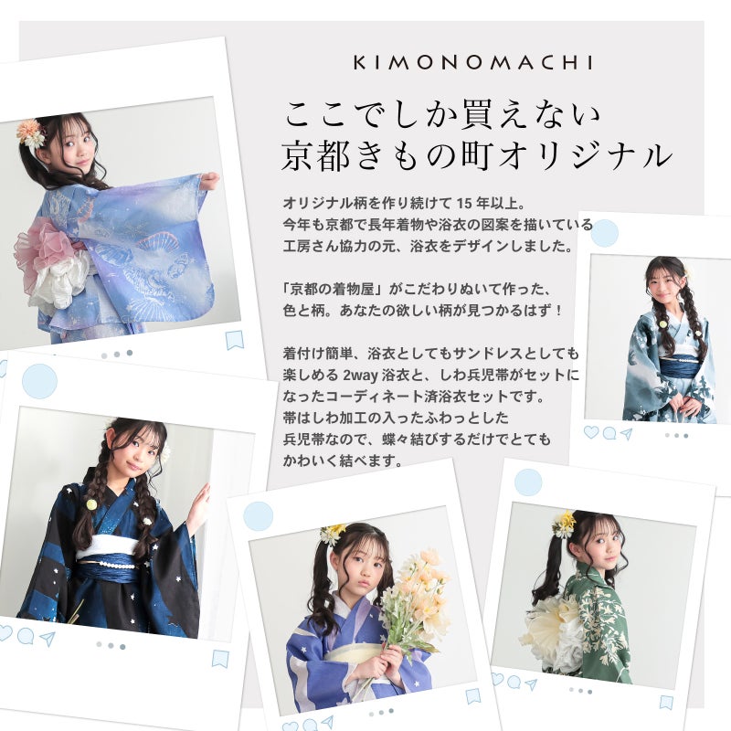 2026年新作浴衣 ワンピースとして着てもかわいい!コーデ済みの浴衣と帯の子供浴衣セット 浴衣 子供 女の子 セパレート ワンピース 子供浴衣セット(サンドレス+上着+帯)「貝殻・アガパンサス・ゆらぎ金魚・天の川」120cm/130cm/140cm/150cm KIMONOMACHIオリジナル 花火大会 夏祭り 夕涼み キッズ ジュニア こども【メール便不可】
