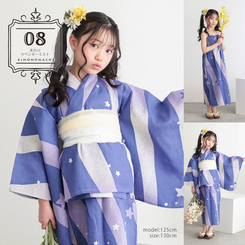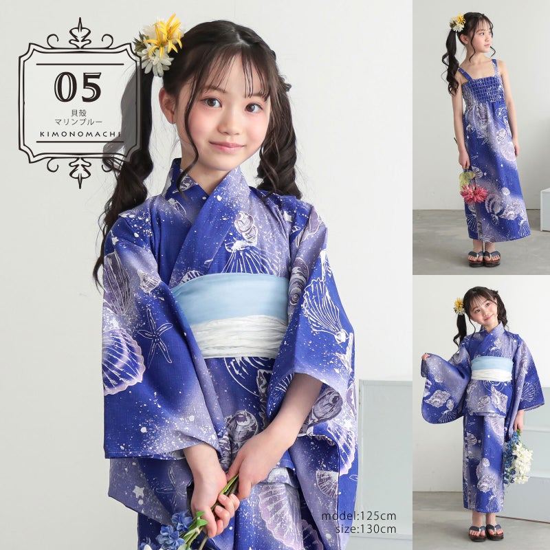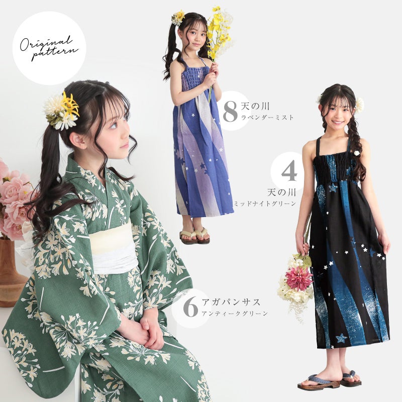 6. 浴衣 子供 女の子 セパレート ワンピース 子供浴衣セット(サンドレス+上着+帯)「貝殻・アガパンサス・ゆらぎ金魚・天の川」120cm/130cm/140cm/150cm KIMONOMACHIオリジナル 花火大会 夏祭り 夕涼み キッズ ジュニア こども【メール便不可】