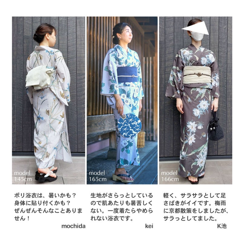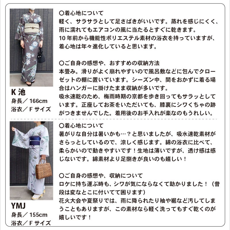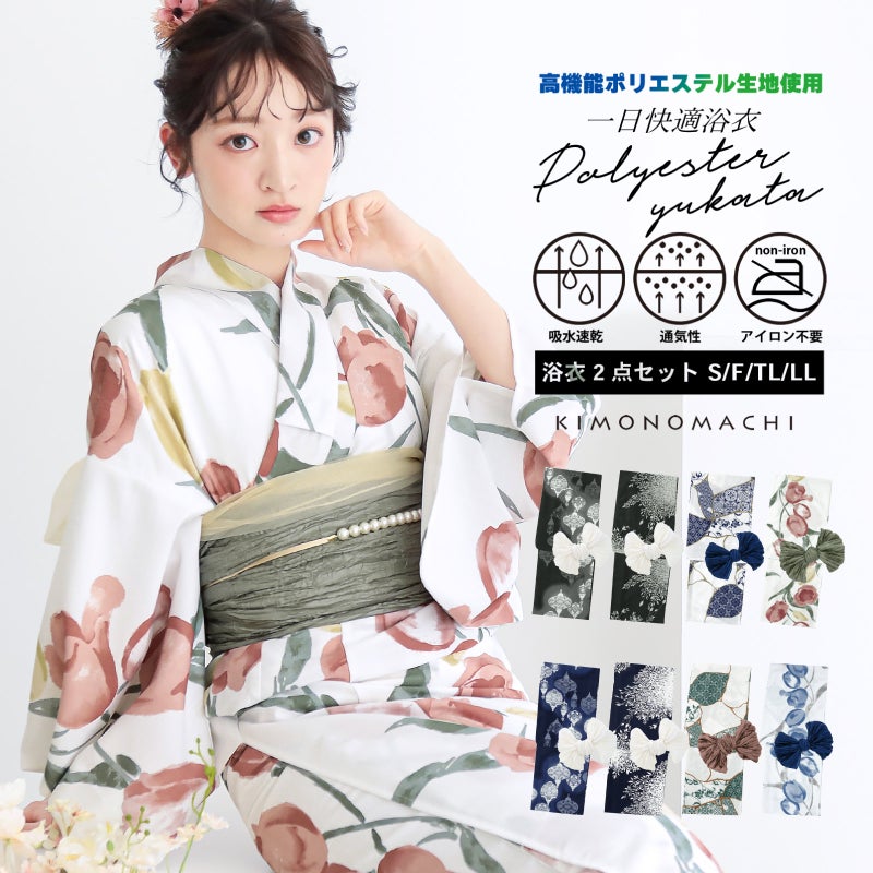 吸水速乾、高機能ポリエステル浴衣、レディース浴衣と兵児帯の2点セットです。