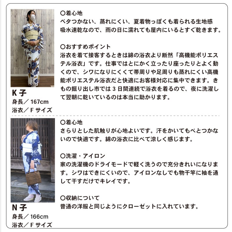 吸水速乾性の高機能ポリエステル生地を使用した浴衣です。