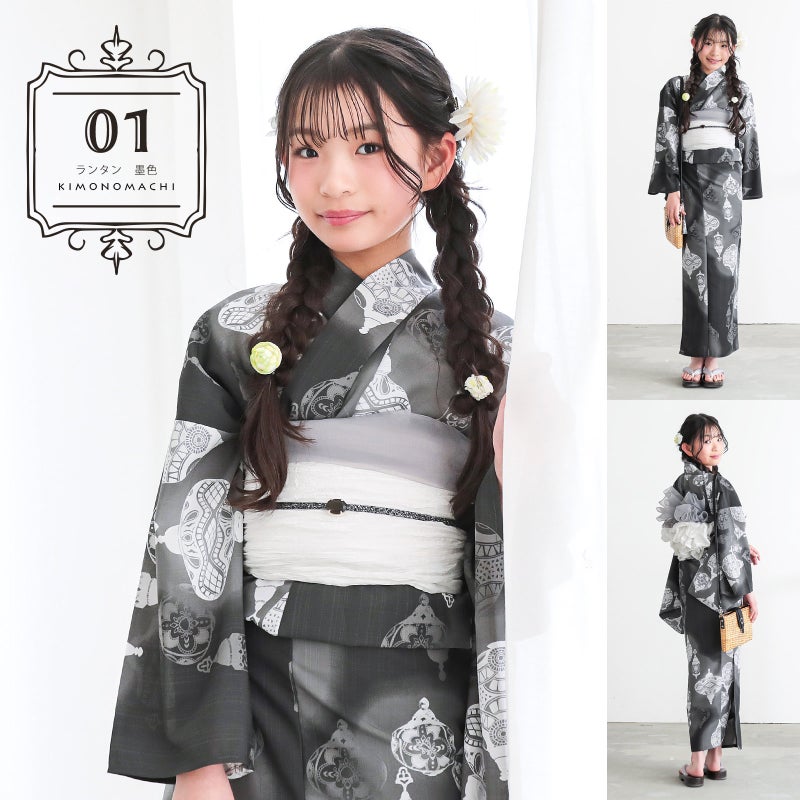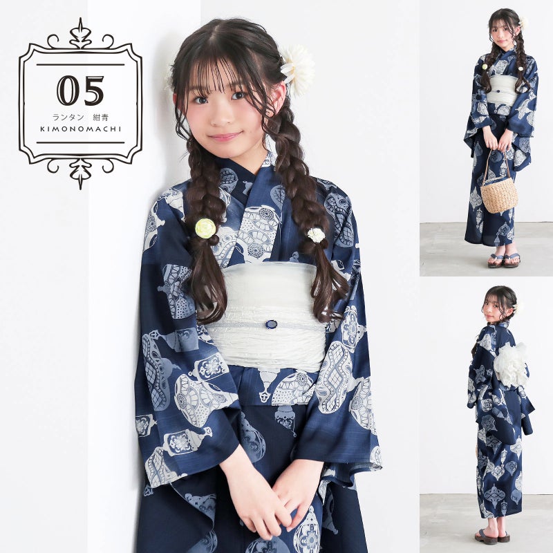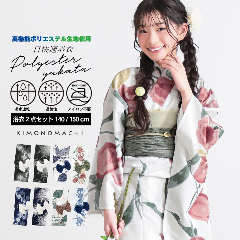 2026年新作浴衣 お祭り、花火大会、盆踊りに!KIMONOMACHIオリジナル浴衣セット 浴衣 女の子 子供浴衣セット(浴衣+しわ兵児帯) 吸水速乾 ポリエステル浴衣「ランタン・夜の葉音・金継ぎ・チューリップ」140cm/150cm サイズ ジュニア ポリ浴衣 個性的 花火大会 夏祭り 小学生 中学生 京都きもの町オリジナル KIMONOMACHI【メール便不可】