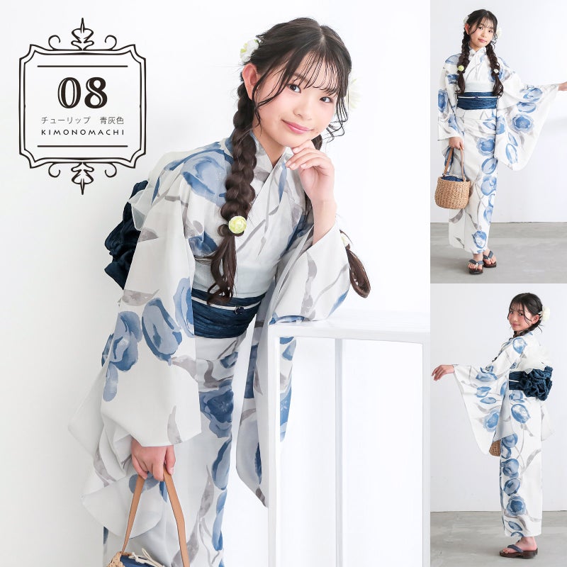 6. 浴衣 女の子 子供浴衣セット(浴衣+しわ兵児帯) 吸水速乾 ポリエステル浴衣「ランタン・夜の葉音・金継ぎ・チューリップ」140cm/150cm サイズ ジュニア ポリ浴衣 個性的 花火大会 夏祭り 小学生 中学生 京都きもの町オリジナル KIMONOMACHI【メール便不可】