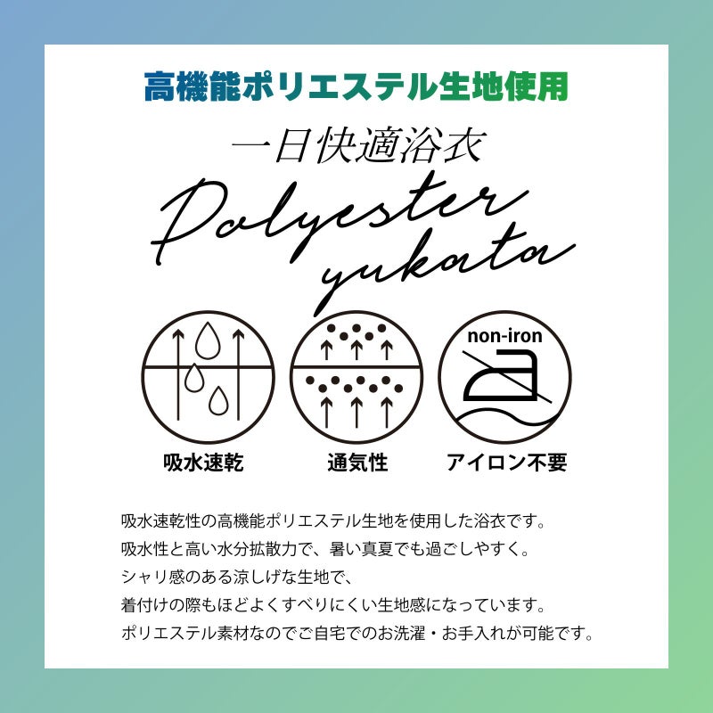 吸水速乾性の高機能ポリエステル生地を使用した浴衣です。