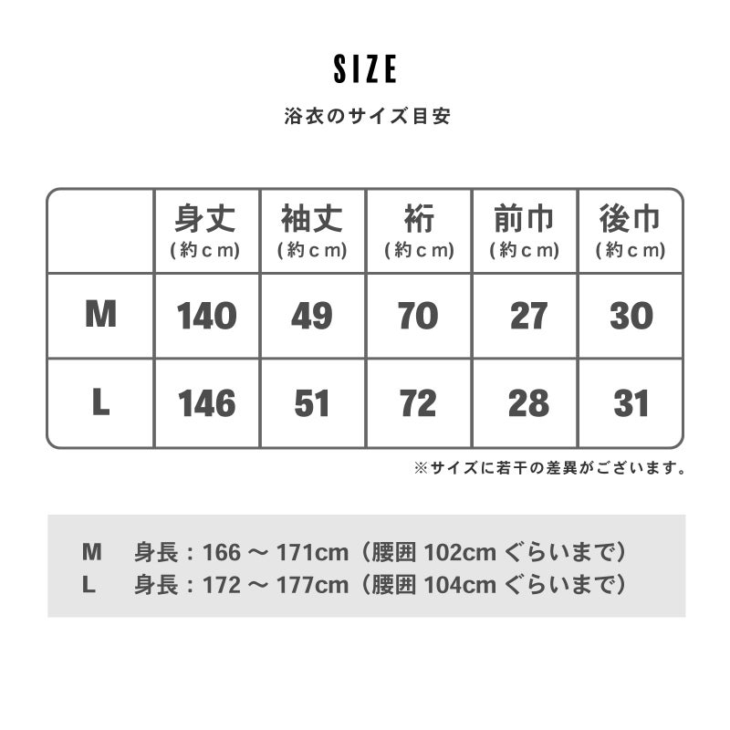 【適応身長の目安(浴衣)】