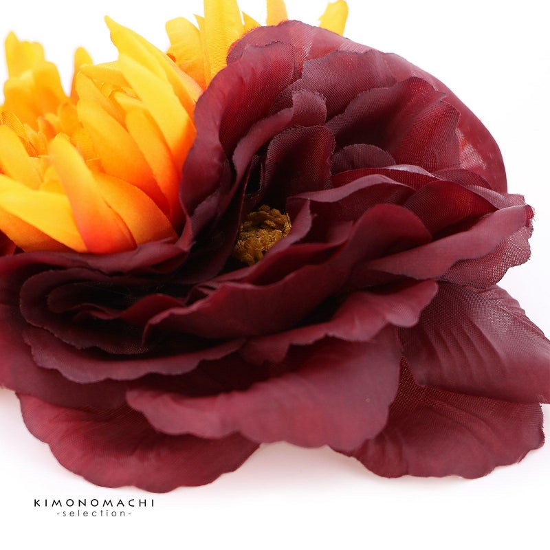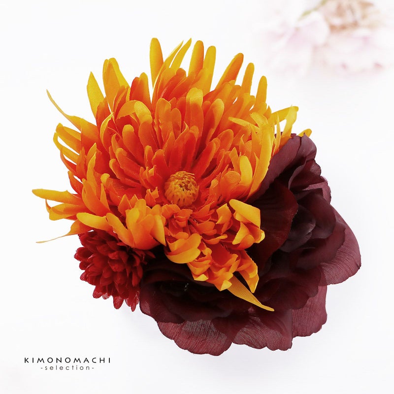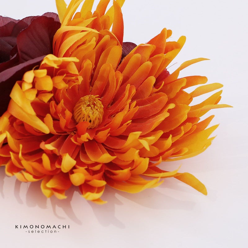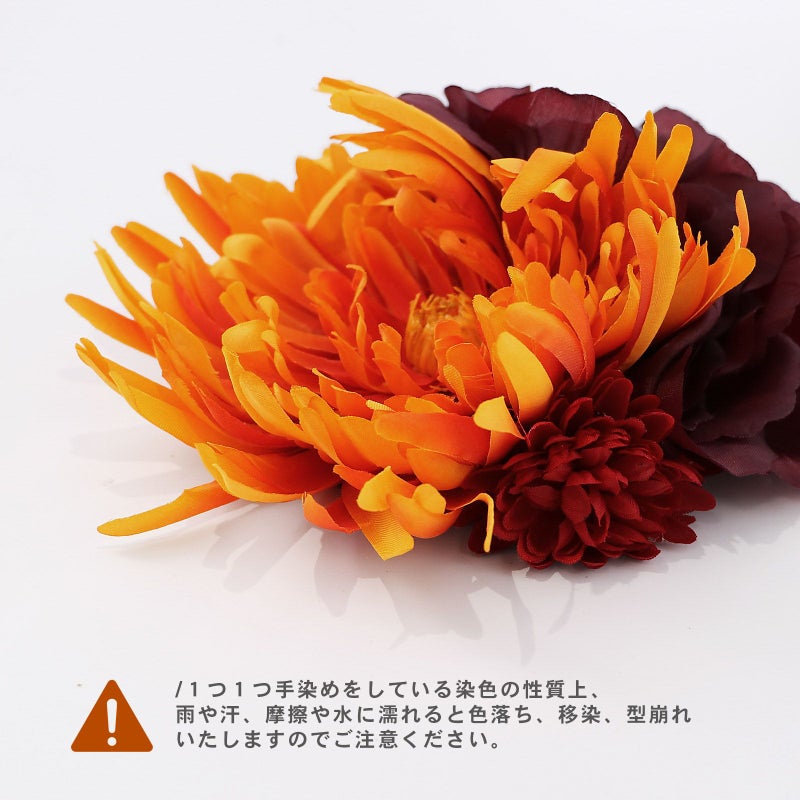 【Prices down5】髪飾り 成人式 卒業式 「オレンジ色ぼかしのお花、紫黒色のお花」 振袖 お花髪飾り 前撮り ヘアアクセサリー【メール便不可】ss2512wkk25