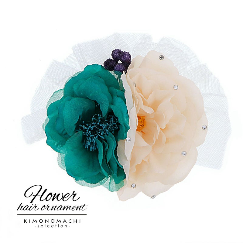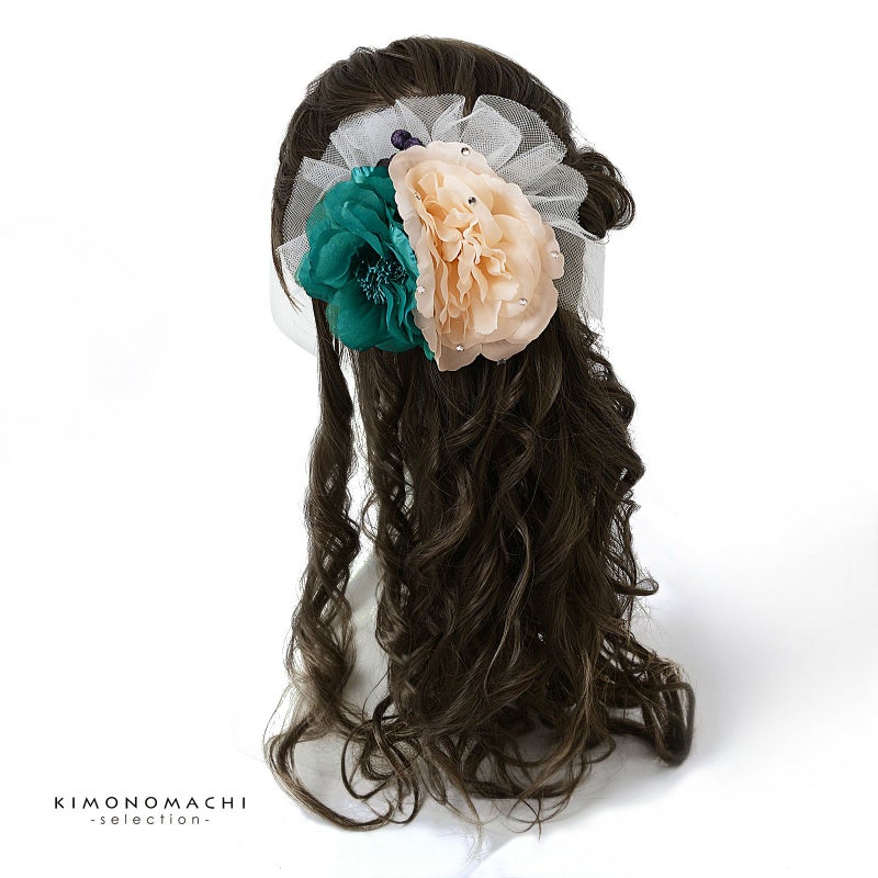 【Prices down5】髪飾り 成人式 卒業式 「ターコイズ×ピンクホワイト 花とレース」 振袖 お花髪飾り 前撮り ヘアアクセサリー【メール便不可】ss2512wkk25