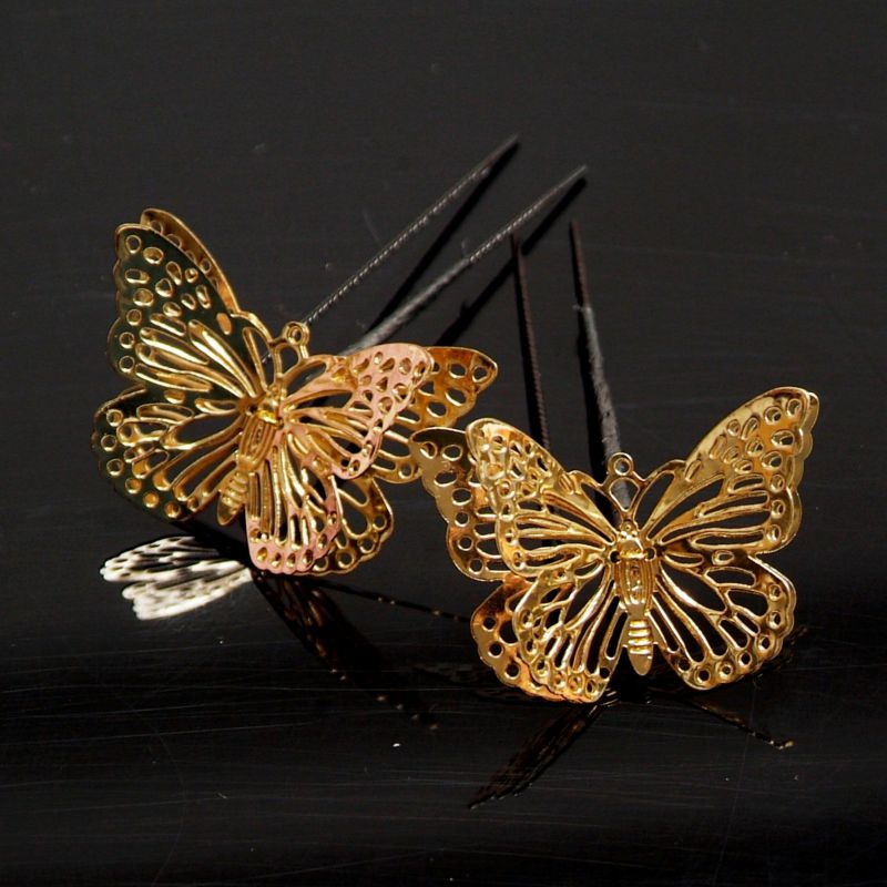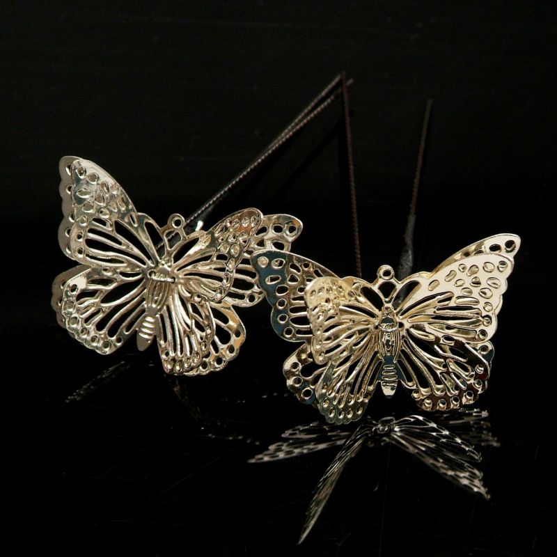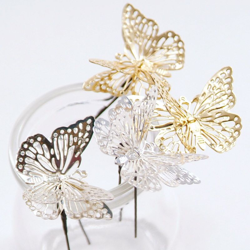 (成人式卒業式10%OFF12/11迄)Uピン髪飾り全2色「蝶々 ゴールド、シルバー」 振袖髪飾り ヘアアレンジ 【メール便不可】<H>