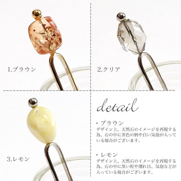 3. 【Prices down2】かんざし 天然石風「ブラウン、クリア、レモン」全3種類 髪飾り 浴衣かんざし 大人かんざし 簪 【メール便不可】<H>ss2506wkk15
