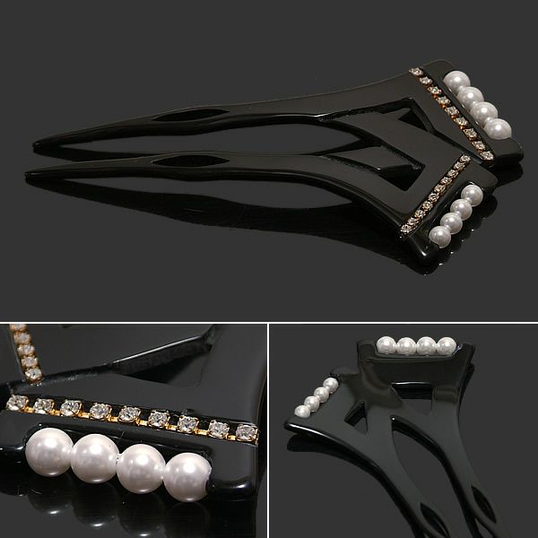 【Prices down5】礼装かんざし「黒色 パールビーズ、ラインストーン」ラインストーンかんざし 結婚式 和装髪飾り 訪問着、留袖に (CM317クロ)【メール便不可】ss2509wkk15