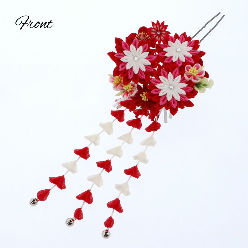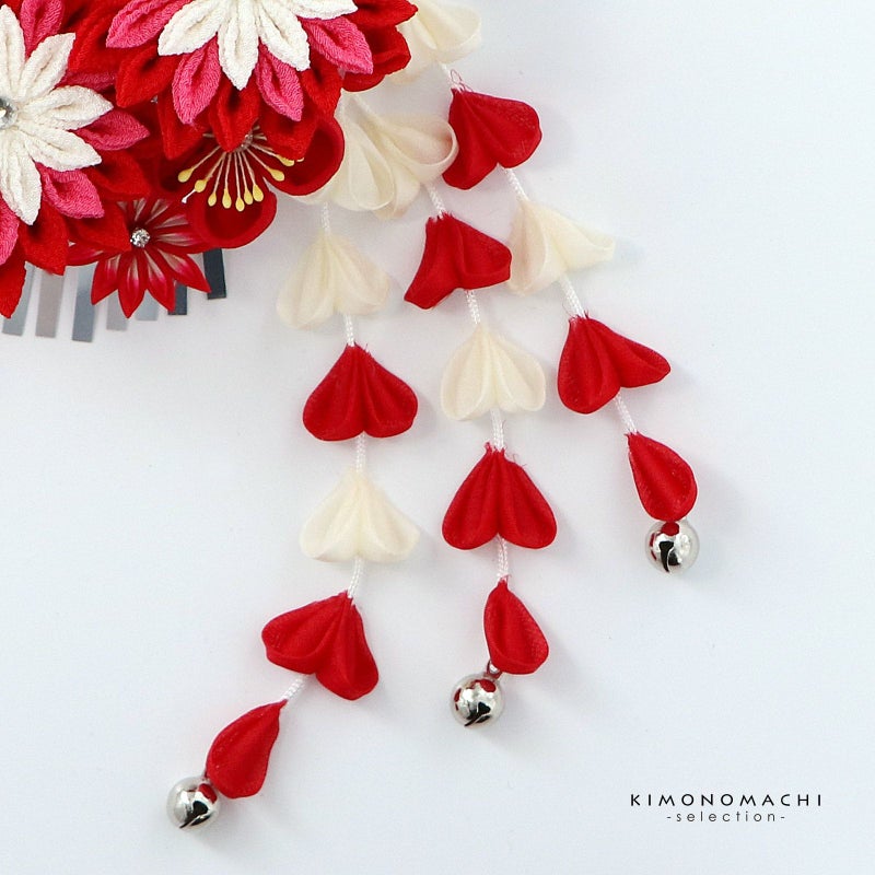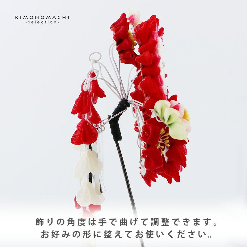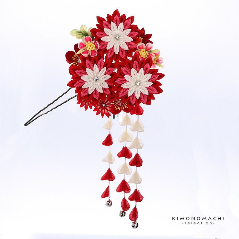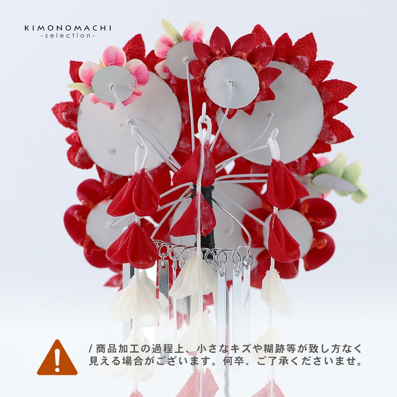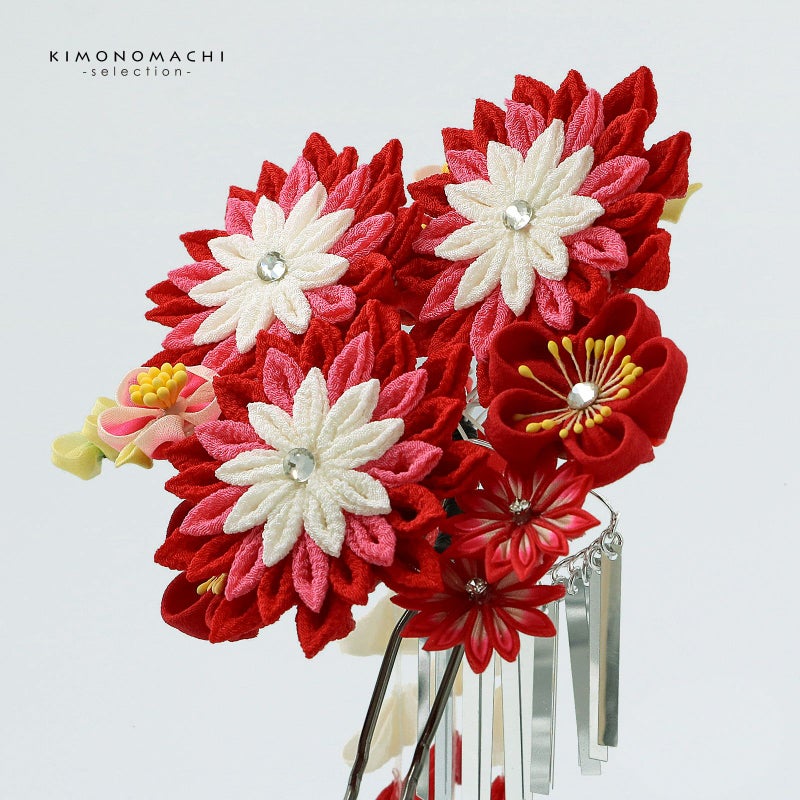 (卒業式応援75%SALE 2/19迄)【Prices down5】つまみ細工髪飾り 「赤色×赤ピンク つまみのお花、房飾り」 成人式 卒業式 振袖 簪 前撮り ヘアアクセサリー【メール便不可】ss2512wkk40