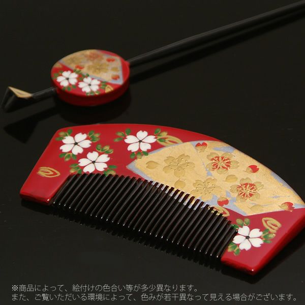 振袖の日本髪に 櫛とかんざしの2点セット 【Prices down】蒔絵塗り前櫛、平打ち簪セット「赤色 桜」成人式 簪 髪飾り 【メール便不可】<H>ss2503wkk10