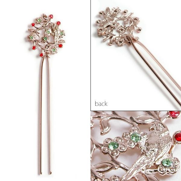 【Prices down5】ピンクゴールドかんざし「オウムとお花」簪 洒落かんざし 髪飾り 【メール便不可】ss2512wkk25