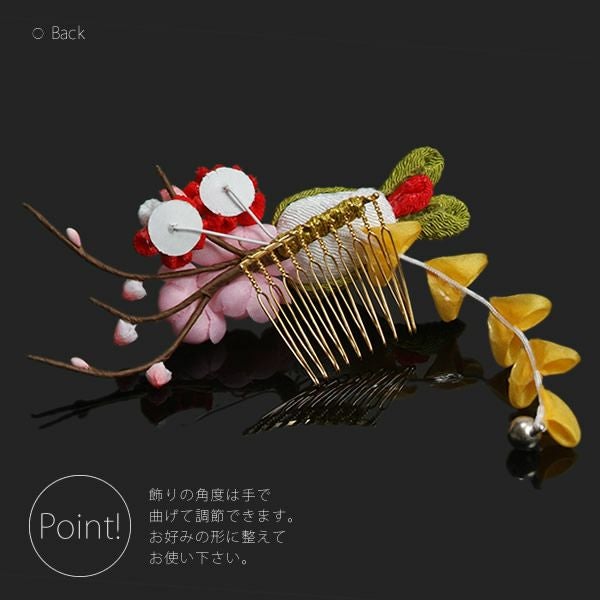 【Prices down5】つまみ細工髪飾り「抹茶色 鳥とお花」コーム髪飾り 卒業式の袴にも お花コーム つまみ細工コーム 成人式の振袖 【メール便不可】ss2512wkk25