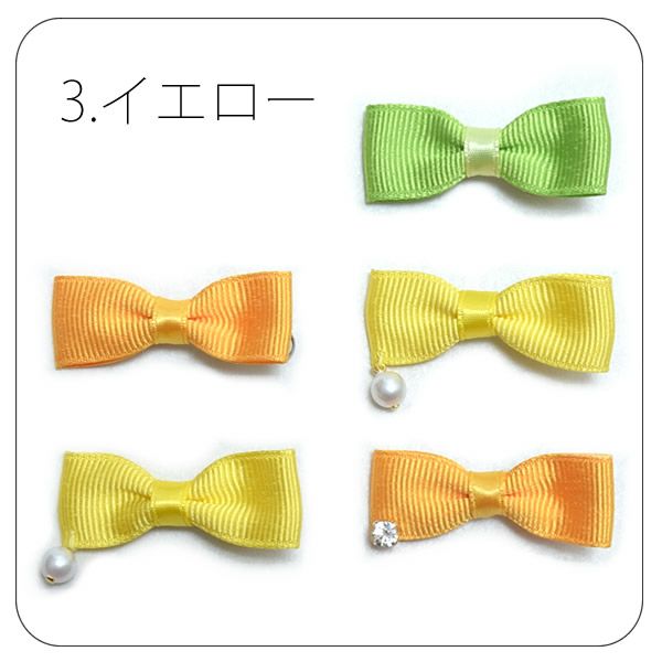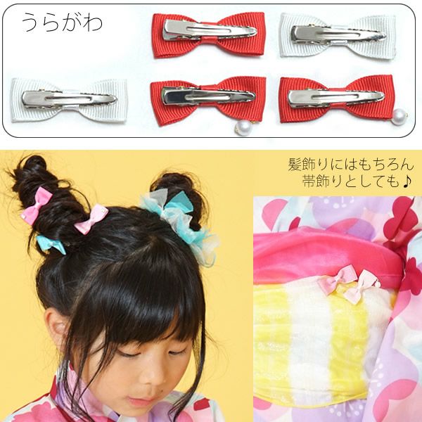 【Prices down3】リボン髪飾り5点セット「赤×白、ピンク、イエロー」クリップセット パールビーズ、ラインストーン 成人式 ブライダル ヘアアクセサリークリップ 【メール便不可】ss2509wkk15
