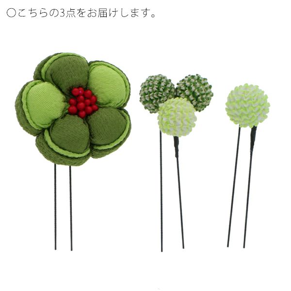 (卒業式応援75%SALE 2/19迄)【Prices down2】振袖、袴髪飾り3点セット「グリーン お花と絞り玉」Uピンセット 卒業式の袴に 髪飾り 絞り玉 お花髪飾り (TO-3188)【メール便不可】<H>ss2512wkk35