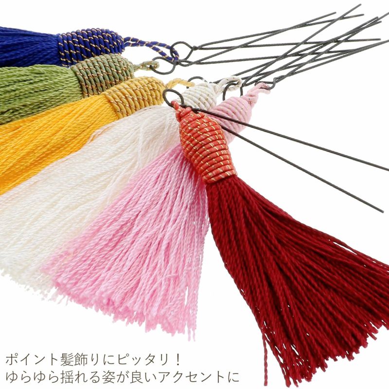 タッセルを使用した髪飾りです。シンプルな髪飾りとして一点つけもかわいいですし、ほかの髪飾りに合わせて華やかさをプラスするのもおすすめです。振袖、袴に。普段のお着物にも。お子様用に、七五三の髪飾りにも。