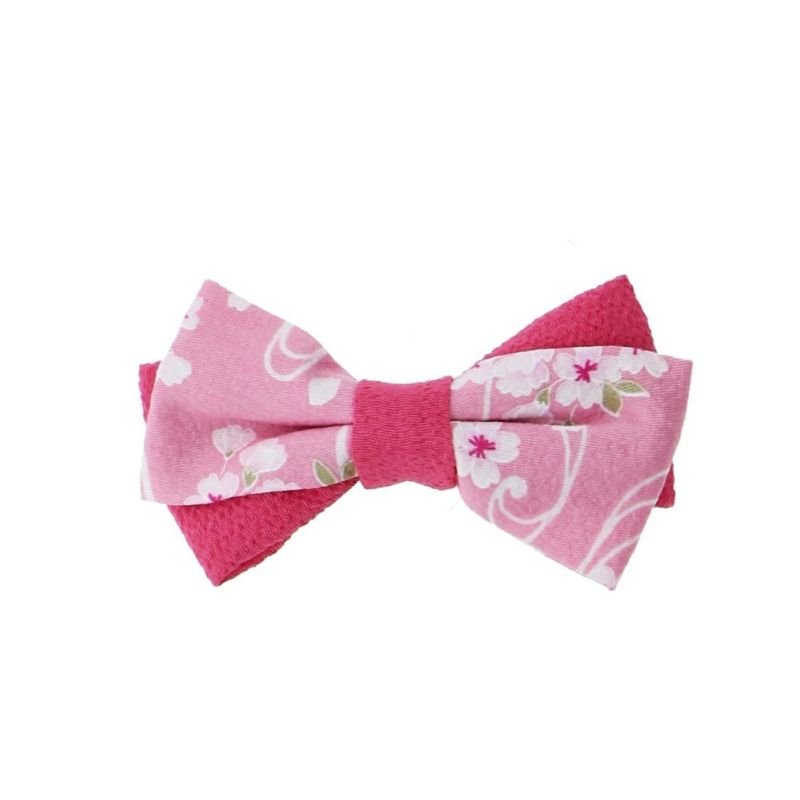 3小桜ピンク系×ローズピンク、…ピンク色の地に白や薄ピンクの小桜の柄のリボンと、ローズピンクのリボンを重ねたクリップ。