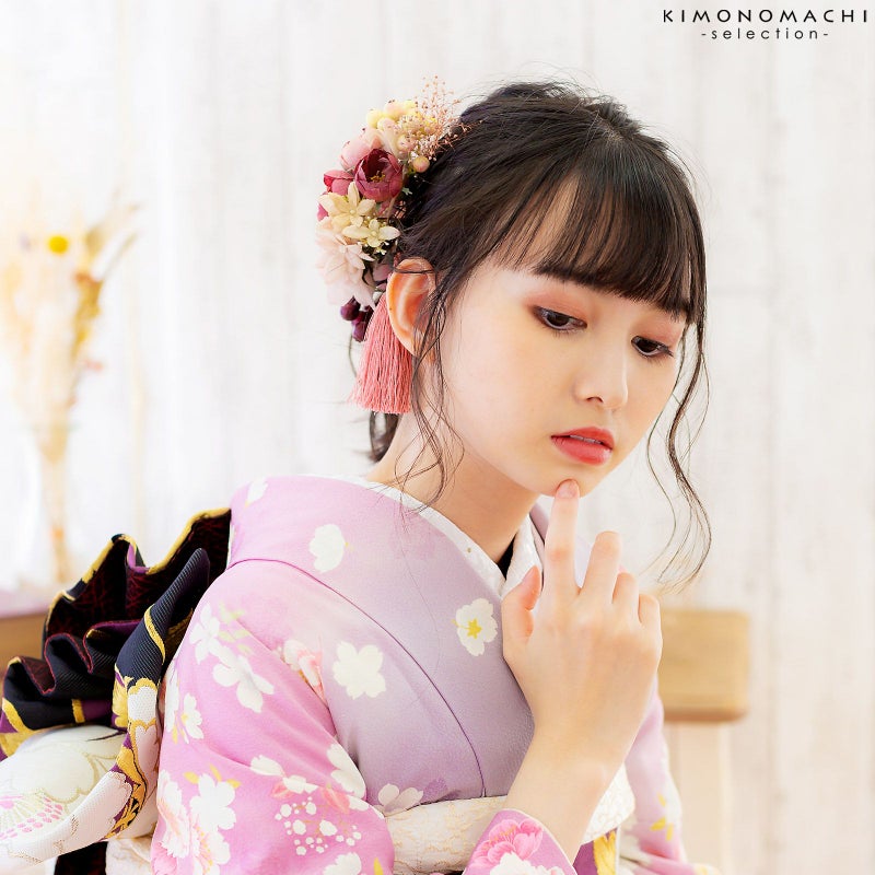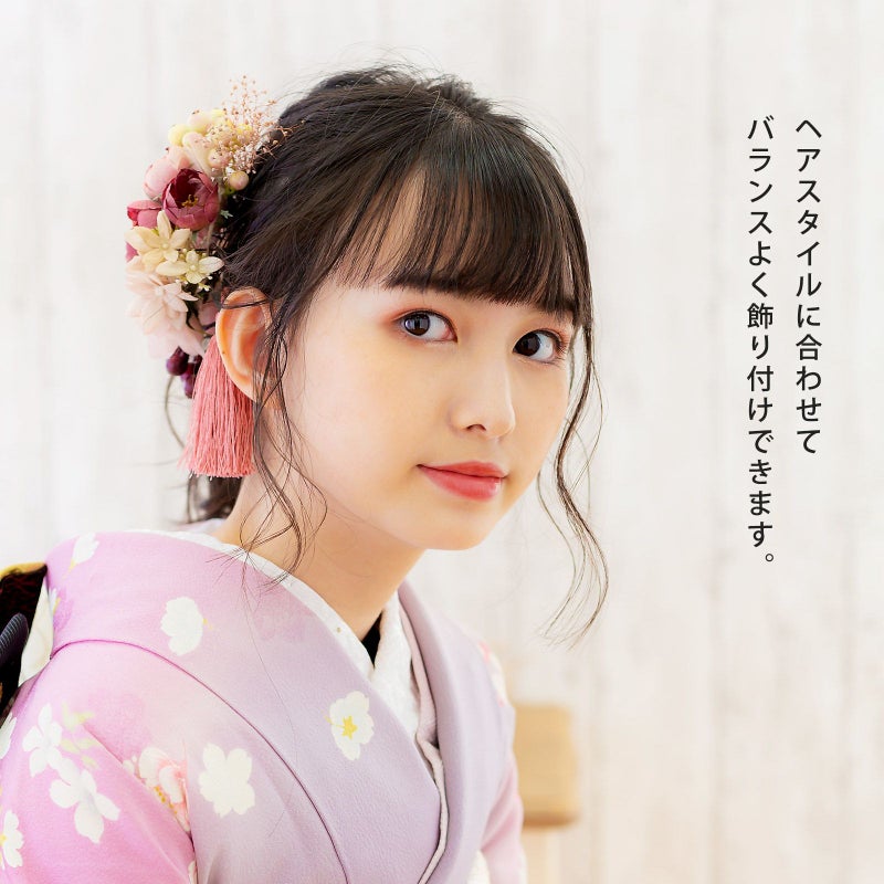 振袖にぴったりのかわいくて華やかな髪飾りです。前撮り撮影、成人式、結婚式にはもちろん、卒業式の袴にも。