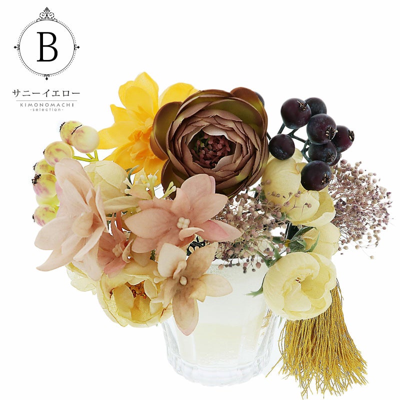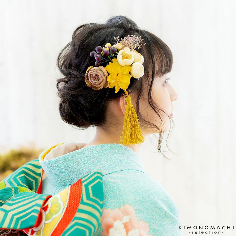 髪飾り 成人式 「Uピン髪飾り10点セット プラムレッド、サニーイエロー MI-25」 振袖用髪飾り お花髪飾り ドライフラワー 卒業式 結婚式 着物