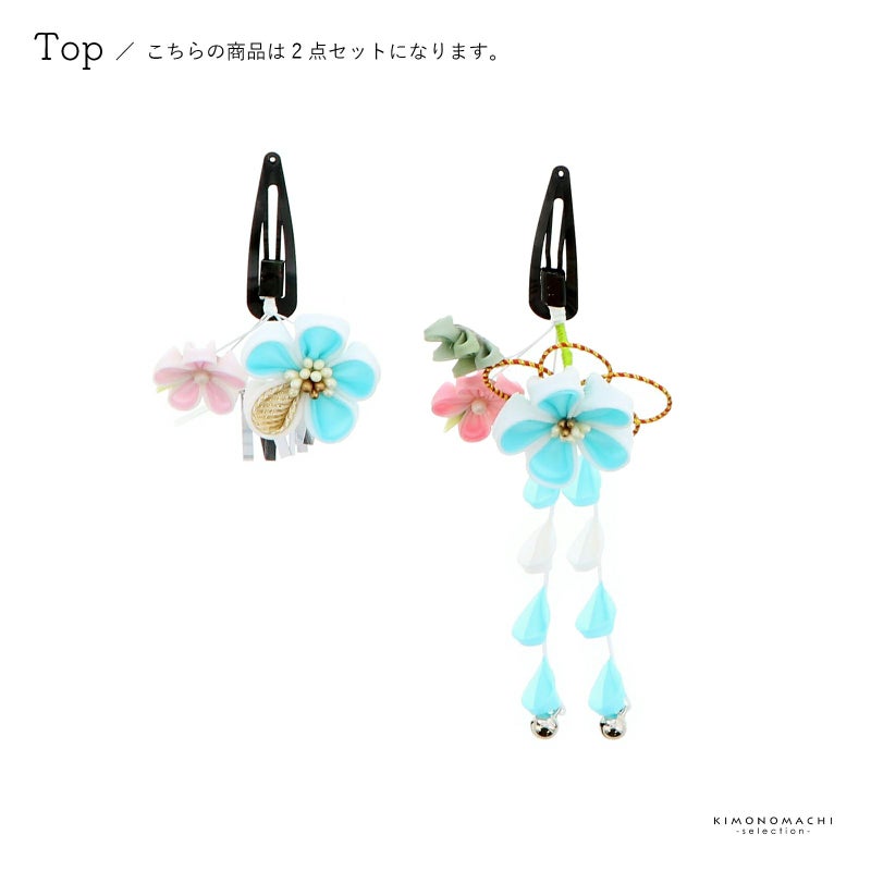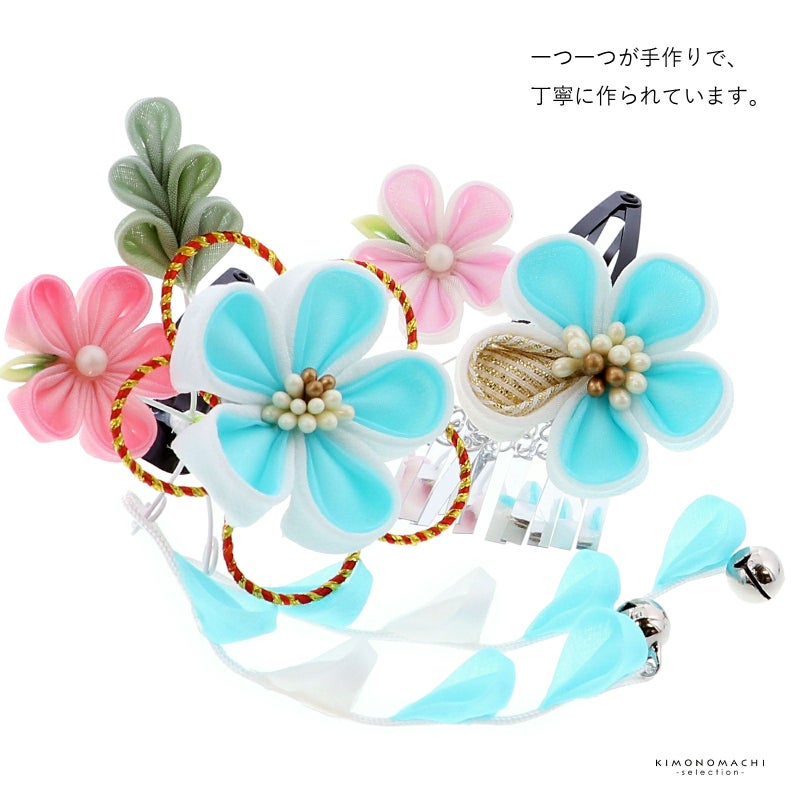 七五三 クリップ 髪飾り 2点セット「水色×白 つまみに水引」ヘアアクセサリー お子様用髪飾り 七五三髪飾り【メール便不可】ss2503kkd10