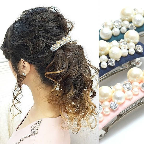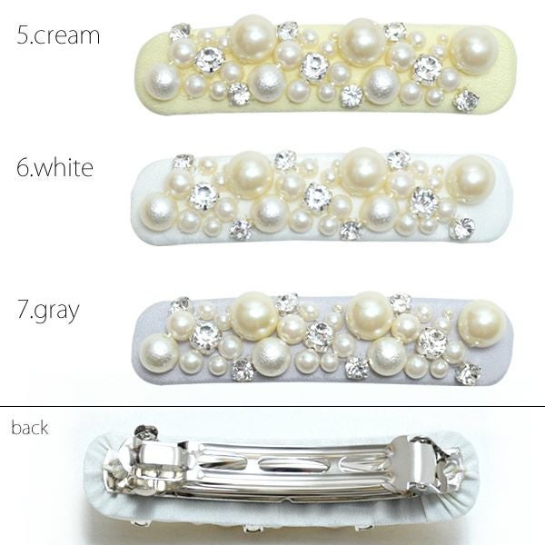 【Prices down3】パールビーズバレッタ「ブラック、ネイビー、グリーン、ピンク、クリーム、ホワイト、グレー」髪飾り フォーマルヘア ヘアアクセサリー 【メール便不可】ss2512wkk40